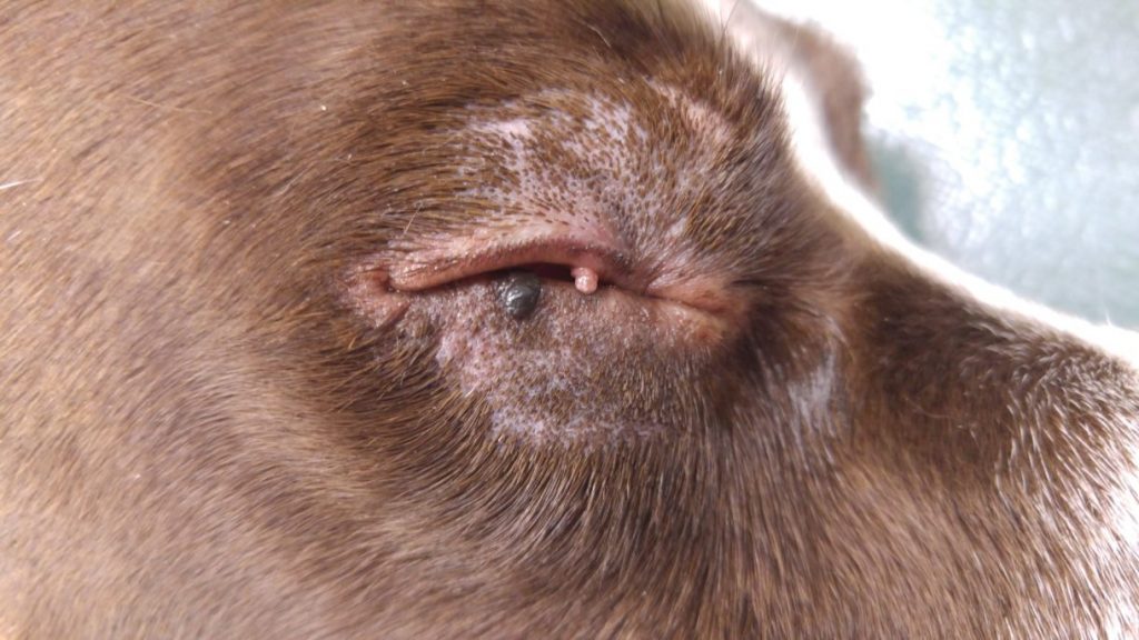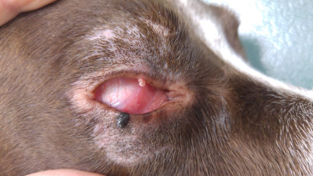 Lorsque les masses palpébrales augmentent de taille, elles peuvent entraîner une irritation de la cornée (partie transparente de l’œil) et de la conjonctive qui peut résulter en des ulcères de cornée et une conjonctivite chronique. Il y a donc une indication d’exérèse chirurgicale.